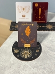 Набір підставок під карти Таро та оракулів – це зручний аксесуар для практики розкладів. У комплект входять дві підставки: одна для роботи з однією картою (щоб дістати головне послання дня чи отримати коротку пораду), та більша – для трьох карт (ідеальна для класичного триплету)Підставки виготовлені з міцного матеріалу, вони допомагають організувати робочий простір і додають практиці структури та естетики. Це чудовий варіант подарунку для таролога або того, хто тільки починає свій шлях у роботі з картами.