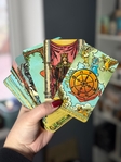 Radiant Wise Spirit Tarot (Таро Сяючий Мудрий Дух) — преміальна, яскрава та глибока інтерпретація класичного Райдер-Вейт. Глянцеві карти зі золотими торцями, чіткі символи й тепла енергетика роблять її ідеальною як для професійних розкладів, так і для початківців.