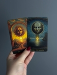 Таро «Шепіт часу» — це містична та глибока колода, що переносить у світ тіней, символів і одвічної мудрості. Кожна карта пропрацьована в деталях: потужні архетипи, атмосферні сюжети та драматична образність створюють неповторну енергію. Колода ідеально підходить як для досвідчених практиків, так і для тих, хто прагне розширити свою інтуїцію та поглибити власний шлях у тарології. Чіткі візуальні акценти допомагають отримувати точні й глибокі послання у будь-яких розкладах.