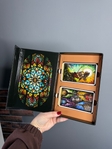 Таро вітражів (Tarot of Stained Glass) — це колода, створена у стилі середньовічних вітражів, де кожна карта ніби пропускає крізь себе світло істини. Вона поєднує класичну символіку системи Райдера–Вейта та унікальну естетику сакрального мистецтва.Яскраві кольори, деталізовані фігури та прозора енергія карт роблять цю колоду чудовим інструментом для глибоких розкладів і духовних практик. Вона допомагає побачити істину крізь призму світла, гармонії та внутрішнього усвідомлення.