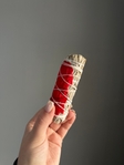 Пахощі «Біла шавлія з трояндою» – це унікальне поєднання очищувальних властивостей шавлії та ніжного, гармонізуючого аромату троянди. Вони допомагають звільнити простір від негативної енергії, налаштовують на спокій та любов, створюють атмосферу гармонії та внутрішнього балансу. Ідеальні для медитацій, практик йоги, ритуалів очищення та романтичної атмосфери вдома.