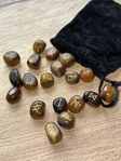 Набір рун із натурального тигрового ока — це потужний талісман для захисту, впевненості та внутрішньої сили. Тигрове око здавна вважається каменем воїнів і лідерів, який допомагає приймати правильні рішення, відганяти негативну енергію та посилювати особисту енергетику. Ці руни ідеально підходять для ворожіння, магічних практик, медитацій і роботи з намірами.