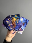 Таро «Небесний океан» — це чарівна колода, створена у сяючій космічній естетиці, де зоряне небо переплітається з глибинною інтуїцією. Кожна карта опрацьована до дрібниць: насичені фіолетово-сині тони, золоті акценти, магічні символи й м’яке світіння створюють неймовірні відчуття