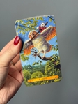 Таро Сов — це символічна та глибока колода, що поєднує класичну структуру Таро з архетипом Сови — хранительки таємниць, нічного знання й інтуїтивної мудрості.Сова тут виступає провідником між видимим і прихованим, допомагаючи бачити суть ситуацій без ілюзій.Візуальний стиль карт — насичений, символічний і атмосферний. Образи сови, її ока, пір’я та нічних пейзажів активують підсвідоме сприйняття й допомагають зчитувати підказки інтуїтивно, навіть без глибокого знання значень.