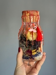 обʼєм: 0,6 л Відьмині бутилочки на особисте життя — це талісман, що допомагає притягнути гармонійні стосунки, відкрити серце для кохання та зміцнити вже існуючі зв’язки. Усередині бутилочки зібрані трави, камінці й символічні елементи, які працюють на любов, довіру та ніжність. Вона допомагає прибрати блоки у сфері почуттів, відкритися до нових знайомств і наповнити стосунки теплом. Такий оберіг стане супутником у період пошуку кохання, створення сім’ї чи роботи над гармонією у парі.